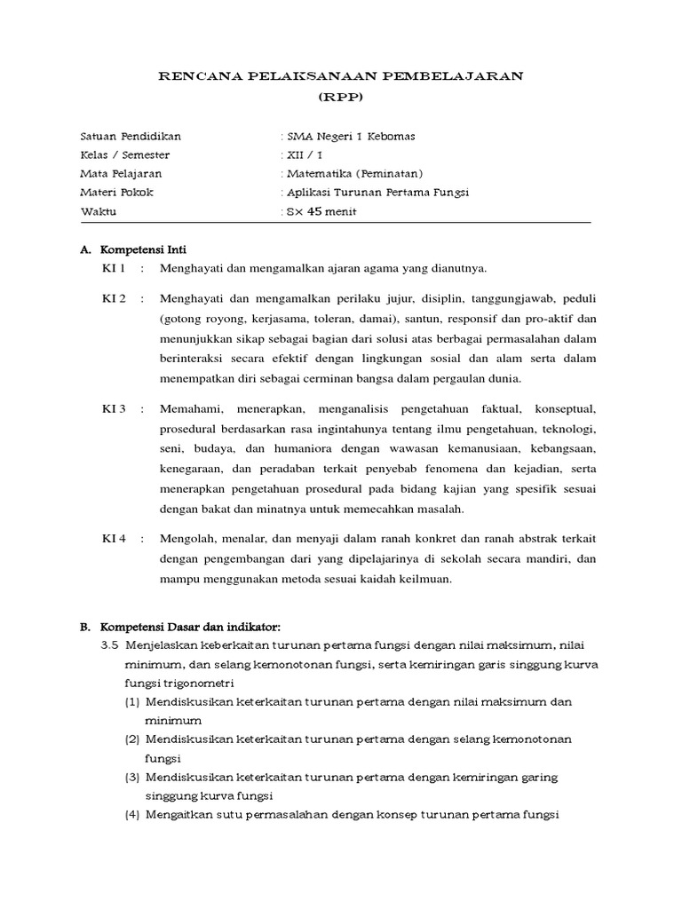 Kab Gresik 1 Rpp Aplikasi Turunan Pertama Docx