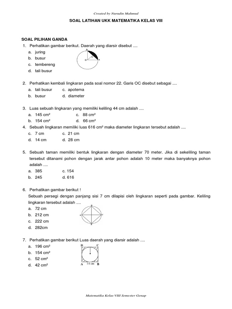 Materi Kelas 5 Latihan Soal Matematika Keliling Diameter